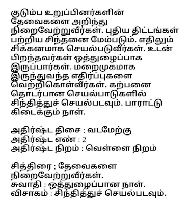 Today Star: Poorattaadhi up to 04.03 am then Uththirattaadhi.