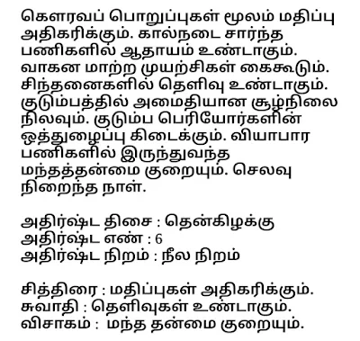 Today's Yogam: Marana Yogam up to 06.03 am then Sidhdha Yogam up to 11.49 pm then Marana Yogam.